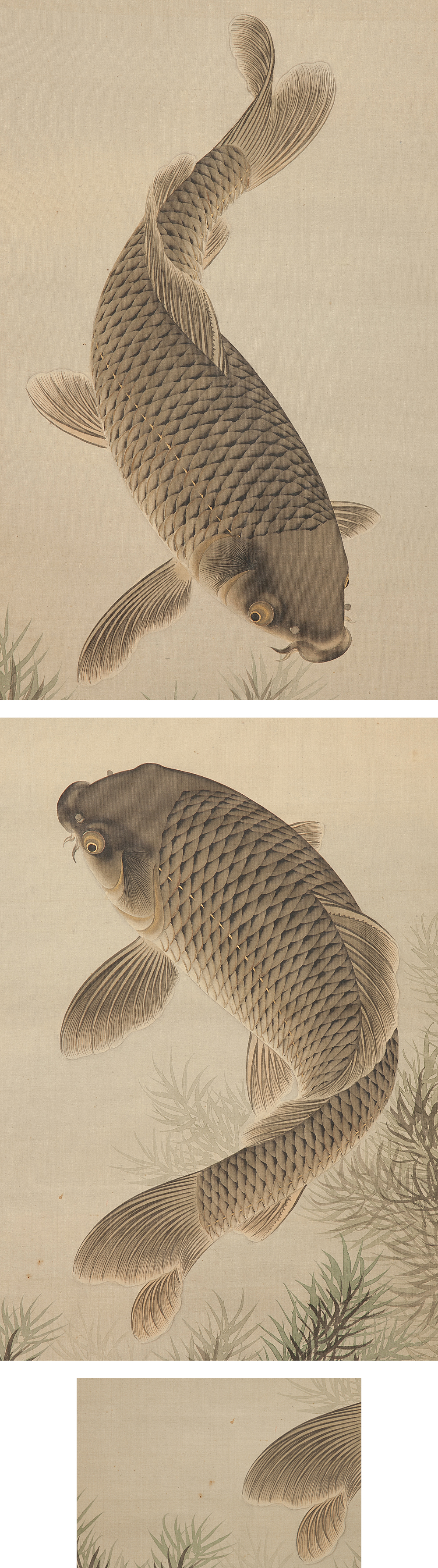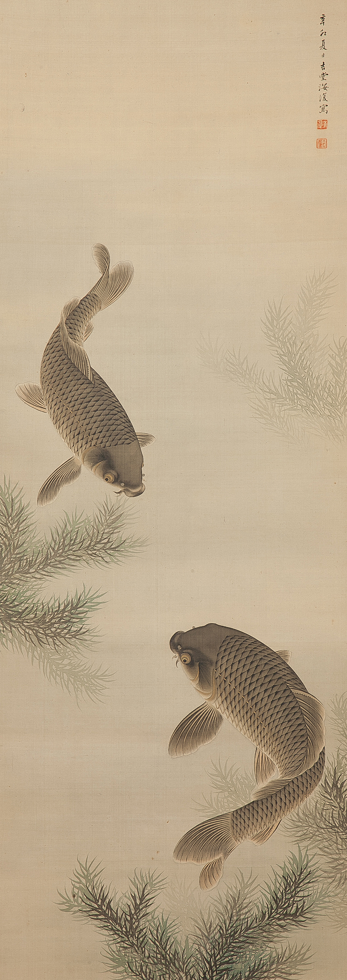 品名 内海吉堂 『双鯉』 絹本 彩色 掛軸 箱付 真作