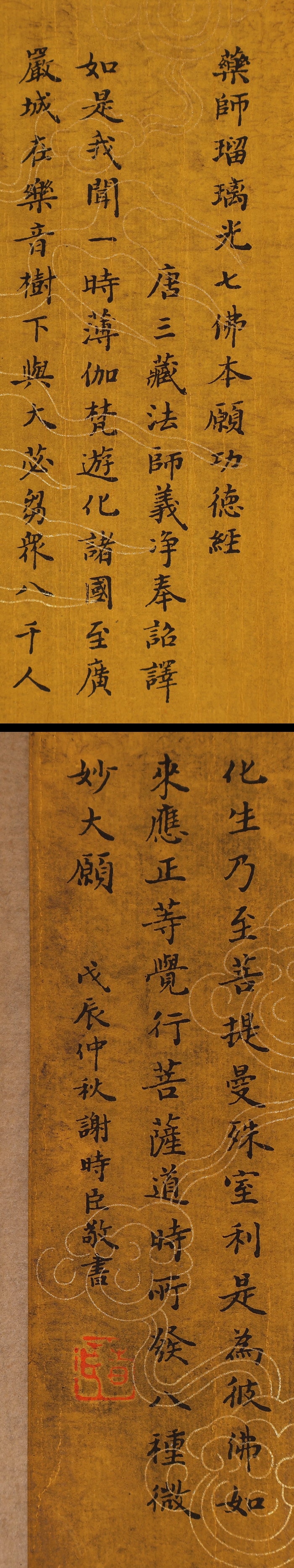 【模写】【伝来】ts6370〈謝時臣〉写経巻物 「薬師瑠璃光七仏本願功徳経」 中国画 明代