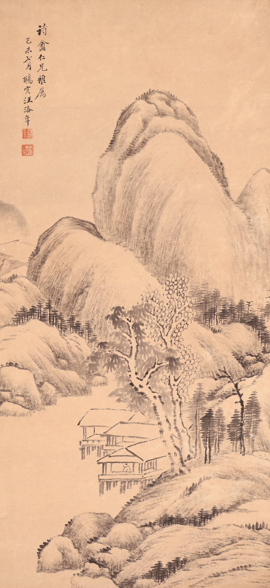 【模写】【伝来】ts6415〈汪洛年〉山水図 中国画 杭州 清代後期